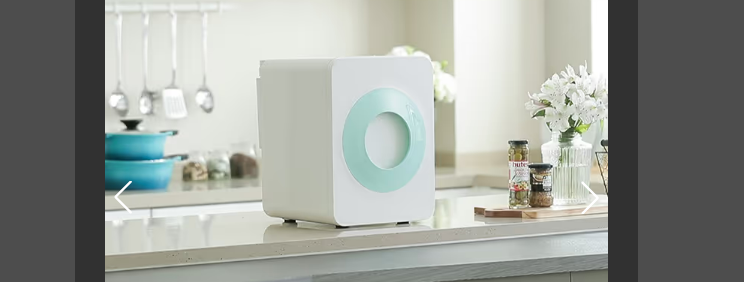 サイズはコンパクトな設計(幅270mm × 奥行380mm(背面フィルター取付時) × 高さ350mm)で、キッチンにもスムーズに設置可能です。デザイン性にも優れ、おしゃれでモダンな雰囲気を演出します。